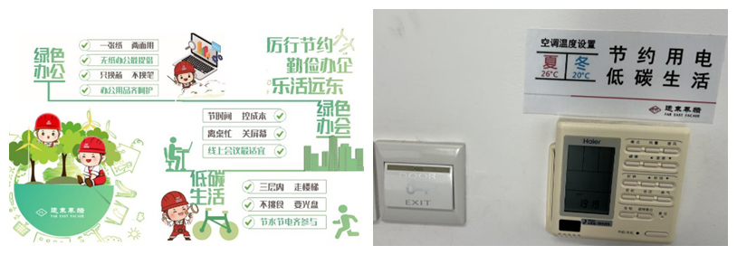 辦公室各處張貼環保海報和節約標識,推行綠色辦公室實踐